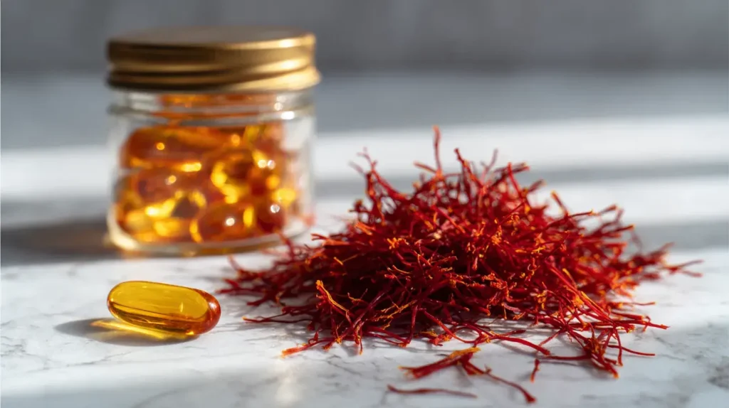 La posologie validée par les études cliniques est de 30 mg d’extrait standardisé par jour, répartis idéalement en deux prises de 15 mg. Les protocoles de recherche utilisent généralement des extraits standardisés à 2% de safranal ou 3% de crocines, et la durée minimale pour observer des effets significatifs est de 6 à 8 semaines, avec un maintien des bénéfices jusqu’à 12 semaines dans les études longitudinales. Tradition Nature